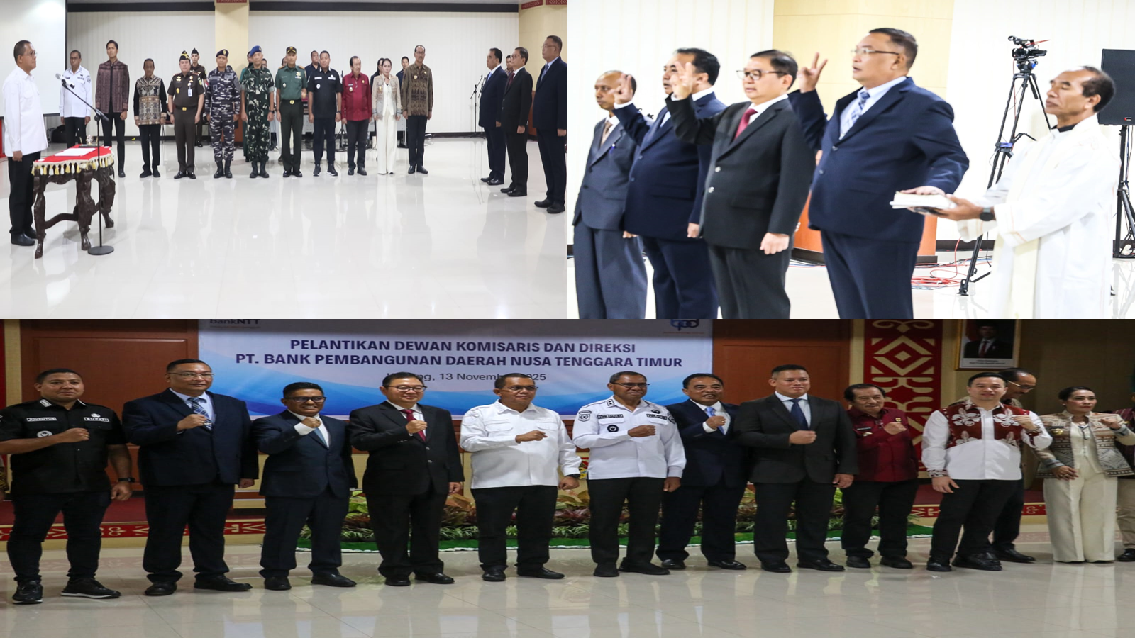 KUPANG – dmckoe.com, Bertempat di Aula Fernandez Kantor Gubernur NTT pada Kamis 13 November 2025 dilaksanakan Pelantikan Direksi dan Komisaris PT Bank Pembangunan Daerah NTT oleh Gubernur NTT, Emanuel Melkiadea Laka Lena. Pelantikan tersebut tertuang dalam Surat Keputusan Gubernur Nomor 427/KEP/KK/2025, 428/KEP/KK/2025, 429/KEP/KK/2025, 430/KEP/KK/2025, dan 431/KEP/KK/2025 tanggal 12 November 2025.